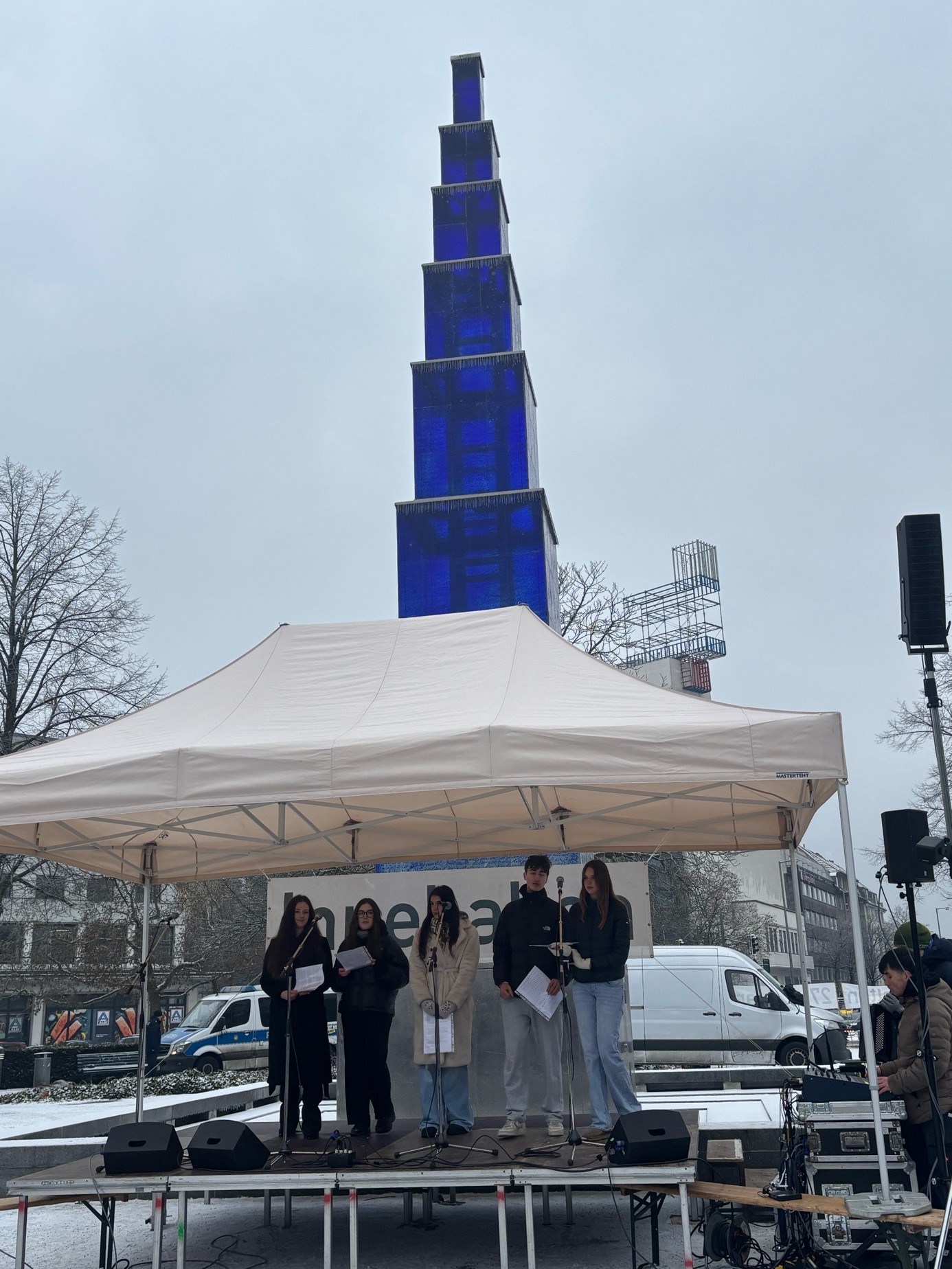 Am Dienstag, dem 27. Januar 2026, versammelten sich wie jedes Jahr zahlreiche Schülerinnen und Schüler anlässlich des 81. Jahrestages der Befreiung des Konzentrationslagers Auschwitz-Birkenau auf dem Theodor-Heuss-Platz, um den Opfern des Nationalsozialismus zu gedenken.