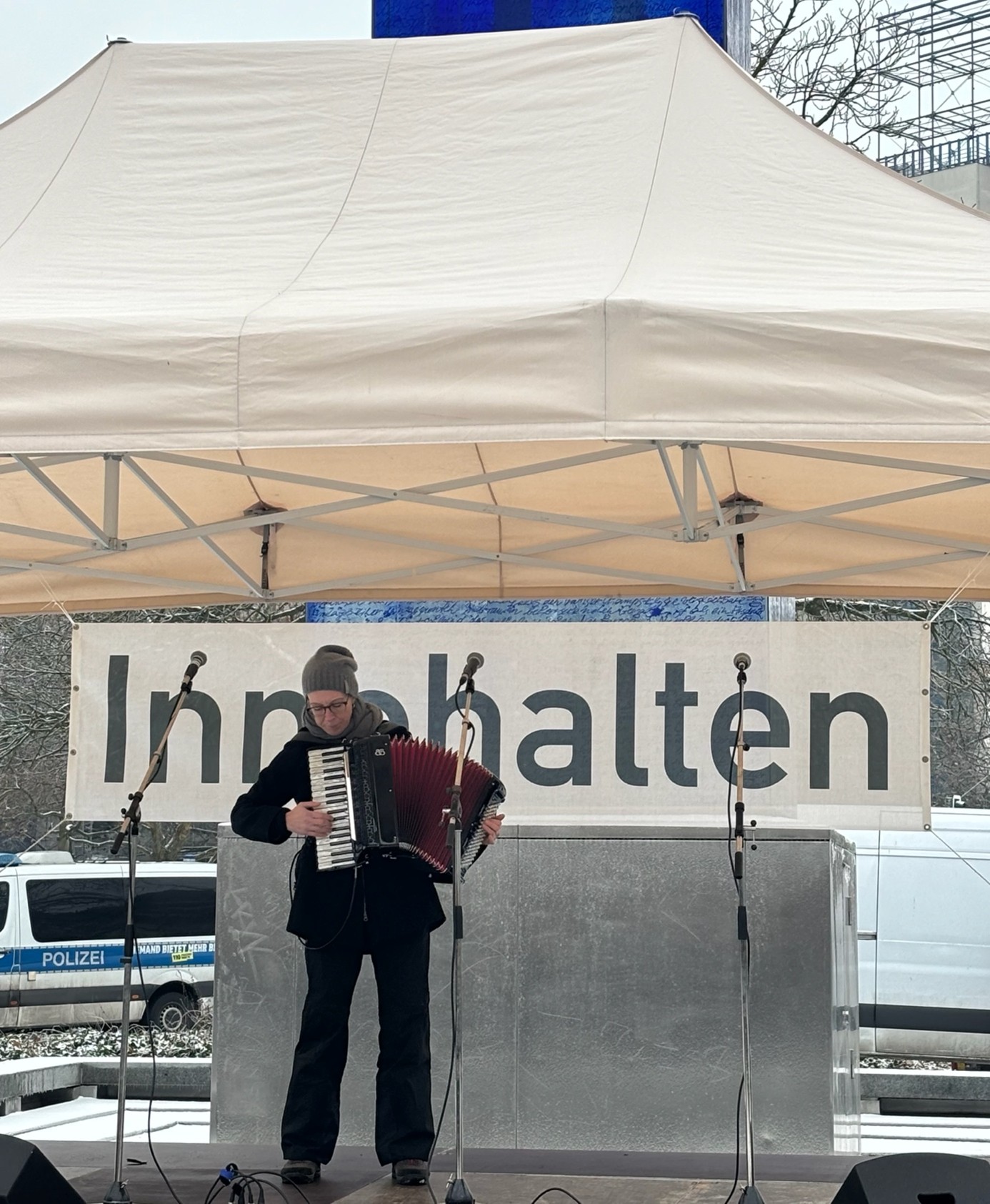 Mit musikalischer Begleitung von Isabel Neuenfeld sowie Schülerbeiträgen vom Walther-Rathenau-Gymnasium, vom Evangelischen Gymnasium zum Grauen Kloster und vom Herder-Gymnasium sollte deutlich gemacht werden, wie gefährlich es ist, wenn heute rassistische, antisemitische oder diskriminierende Worte gebraucht werden und darauf Gewalt folgt. Dabei wurde sowohl die historische als auch die gesellschaftliche Seite beleuchtet und angesprochen, wie wir betroffenen Menschen in der Gegenwart beistehen können.